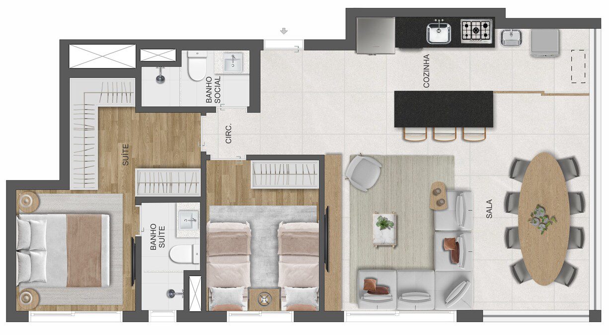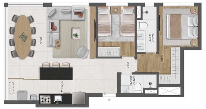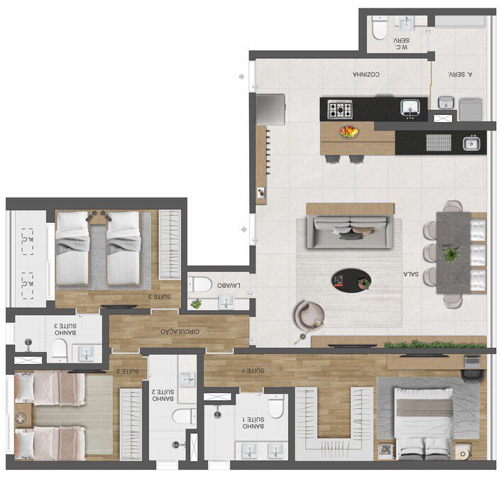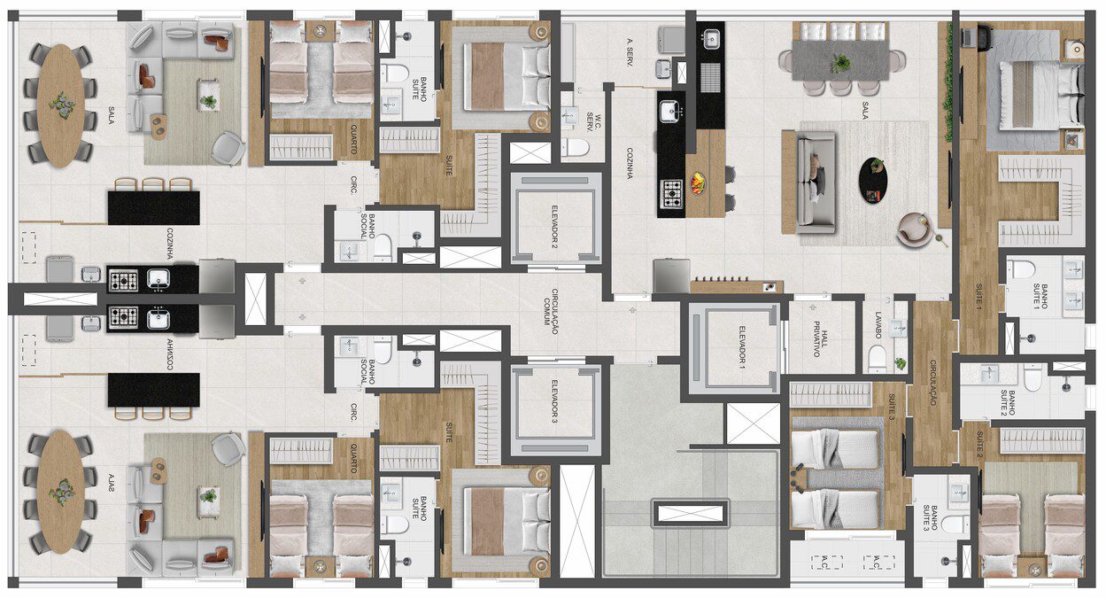 Apartamentos de 327m2, que conta com os diferenciais de Elevador Shabat e Ponto de Recarga para Carro Elétrico, além de itens de lazer, como Salão de Festas Gourmet, Academia, Brinquedoteca, Mini Market e Espaço Zen.